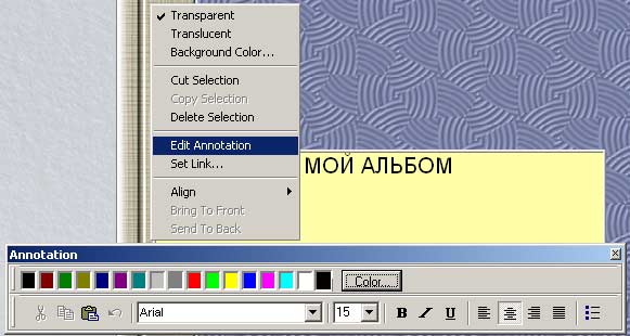 текстовое меню при помощи команды Annotate