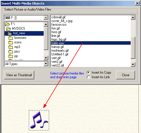 мышью перетаскиваем на страницу нужный объект