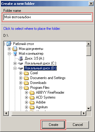 цифровых фотоальбомов на диске пользователя с