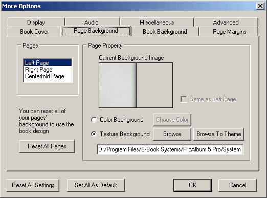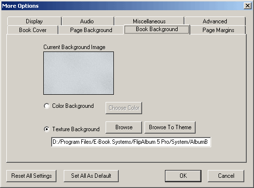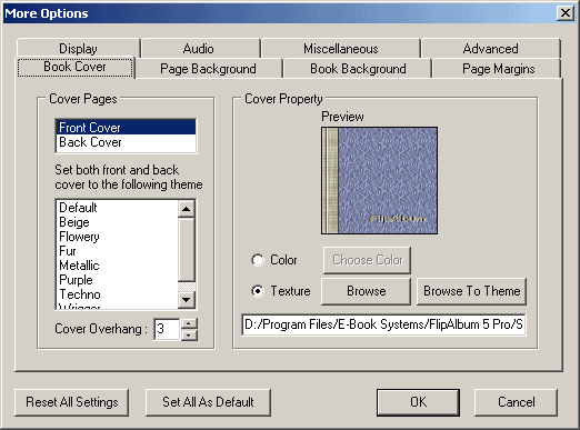 в меню Optoins - More Options, и на вкладке Book Cover выбираем